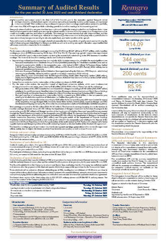 These dividends will be subject to dividend withholding tax of 20%, resulting in a net dividend of 198.40 cents per share in Company’s website at www.remgro.com.