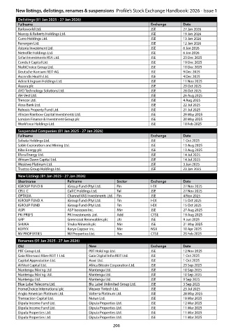 New listings, delistings, renames & suspensions Profile’s Stock Exchange Handbook: 2026 - Issue 1