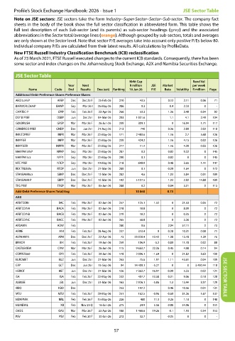 Profile’s Stock Exchange Handbook: 2026 - Issue 1 JSE Sector Table